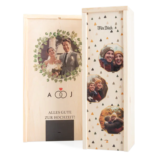 Wen überraschen Sie mit einer prickelnden Flasche Champagner? Schenken Sie Ihren Lieben eine personalisierte Champagnerkiste! So können Sie ganz einfach ein individuelles Geschenk gestalten und Freude bereiten. Die Champagnerkiste eignet sich für jeden Anlass, ob Weihnachten, Geburtstag oder Hochzeit. Die Champagnerkiste ist aus FSC-zertifiziertem Holz hergestellt. Wählen Sie zwischen einem oder zwei Fächern und bestellen Sie Ihren Champagner gleich mit!