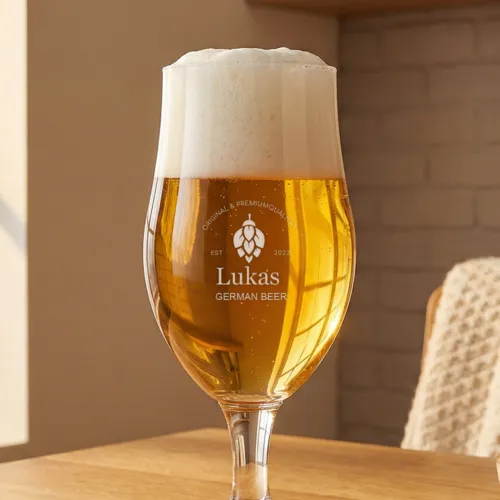 Wählen Sie aus verschiedenen stilvollen Designs und verleihen Sie dem Glas eine einzigartige, persönliche Note. Gestalten Sie noch heute Ihr eigenes Bierglas und schenken Sie etwas, das nicht nur schön aussieht, sondern auch wirklich Freude bereitet.