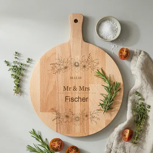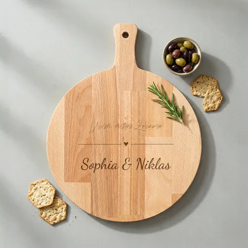- BrautpaarEigener Name · Holz oder PlexiglasAuf der Suche nach dem ultimativen Hochzeitsgeschenk, das nicht im hinteren Teil eines Küchenschranks verschwindet? Unser runder Holz-Snackbrett „Brautpaar” ist der Blickfang auf jedem festlich gedeckten Tisch. Ob für frisch Vermählte oder zum Hochzeitstag: Dieses Brett verbindet Funktionalität mit persönlichem, emotionalem Wert. In die Mitte des Bretts gravieren wir mit äußerster Präzision die Namen des Brautpaares und ihr besonderes Datum. Da das Brett eine runde Form hat, bietet es ausreichend Platz für Käse, Tapas, Häppchen oder die wohlverdiente Hochzeitstorte Ihrer Wahl.Goldfolie0 Fotos