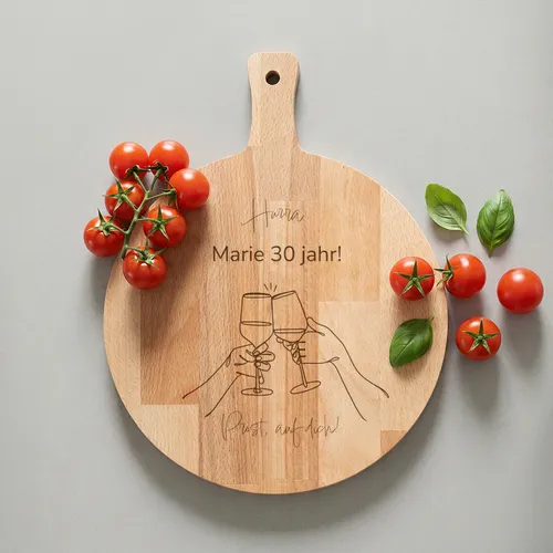 - Prost!Eigener Name · Holz oder PlexiglasDer Klang der Geselligkeit? Das ist das Klirren von Gläsern, die aufeinandertreffen. Unser Snackbrett 'Prost!' hält diesen festlichen Moment für immer in Holz fest. <BREAK> Mit einer wunderschönen Gravur von zwei anstoßenden Händen ist dieses Brett der perfekte Begleiter für jeden Geburtstag, jede Einweihungsparty oder jeden spontanen Freitagnachmittagsumtrunk. Dank der großzügigen runden Oberfläche und des stabilen Griffs lassen sich die Snacks leicht verteilen.Goldfolie0 Fotos
