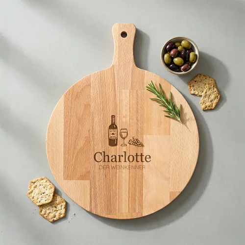 - WeinkennerEigener Name · Holz oder PlexiglasEin guter Wein verlangt nach einer noch besseren Präsentation Ihrer Häppchen. Unsere „Weinkenner”-Snackplatte ist das Prunkstück auf Ihrem Tisch für einen Abend voller Genuss. <BREAK> Mit einer stilvollen Gravur einer Flasche und eines Glas Wein strahlt diese Platte sofort Atmosphäre aus. Ob Sie sich nun für luxuriöse Käsesorten, herzhafte Tapas oder frische Trauben entscheiden: Auf diesem massiven Holz kommt jedes Häppchen voll zur Geltung.Goldfolie0 Fotos