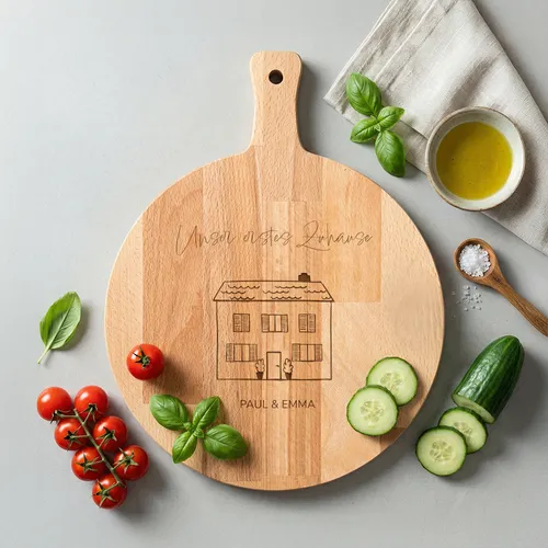 - Unser erstes ZuhauseEigener Name · Holz oder PlexiglasNichts fühlt sich so gut an wie der Schlüssel zu Ihrem ersten Zuhause. Feiern Sie diesen besonderen Moment mit diesem einzigartigen Snackbrett. <BREAK> Mit einem eingravierten Häuschen und dem Text „Unser erstes Zuhause” ist es der perfekte Mittelpunkt für den ersten gemütlichen Abend in Ihrer neuen Küche. Lassen Sie Ihre Namen darunter gravieren, um dem Brett eine persönliche Note zu verleihen.Goldfolie0 Fotos