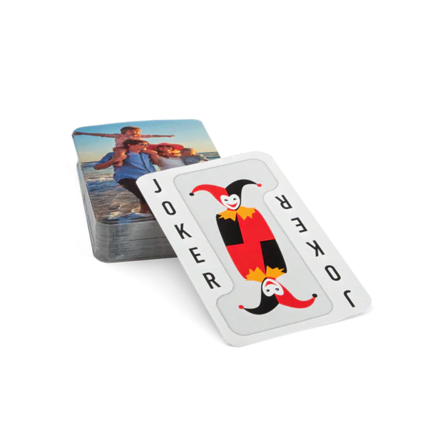 Suchen Sie ein originelles und persönliches Geschenk? Lassen Sie ein Kartenspiel bedrucken mit Ihrem Lieblingsfoto oder einem witzigen Spruch, der auf allen Karten erscheint. Perfekt für einen gemütlichen Spieleabend mit Freunden oder der Familie! Ideal als Überraschung zum Geburtstag, Jubiläum, Vatertag oder Muttertag. Mit personalisierten Spielkarten wird jedes Spiel zu etwas ganz Besonderem und zaubert garantiert ein Lächeln auf jedes Gesicht am Tisch.